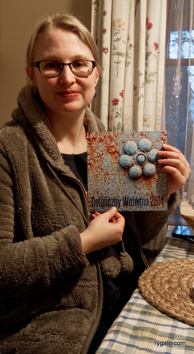 Napadłem zwyciężczynię ubiegłorocznej edycji detalicznego Wołomina w domu. Emblemacik zwycięzcy nie jest może zbyt imponujący, ale siedmiokolorowy, matowy wydruk na aluminium na żywo wygląda znakomicie – nawet, jeśli zdjęcie jest przeciętne…Trochę się ociągałem z wręczeniem, ale mam nadzieję, że mimo to znajdzie się wkrótce na jakimś honorowym miejscu w domu. Przy lodówce na przykład…