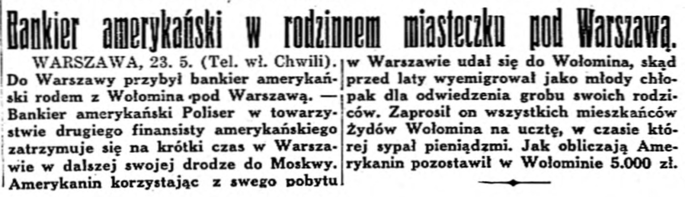 Dziś już nie ma takich bankierów… To znaczy – bankierzy są, pewnie nawet czasem podróżują z Ameryki do Moskwy przez Warszawę, tylko jakoś w Wołominie nie chcą się zatrzymywać, o sypaniu „pieniądzmi” nie wspominając.