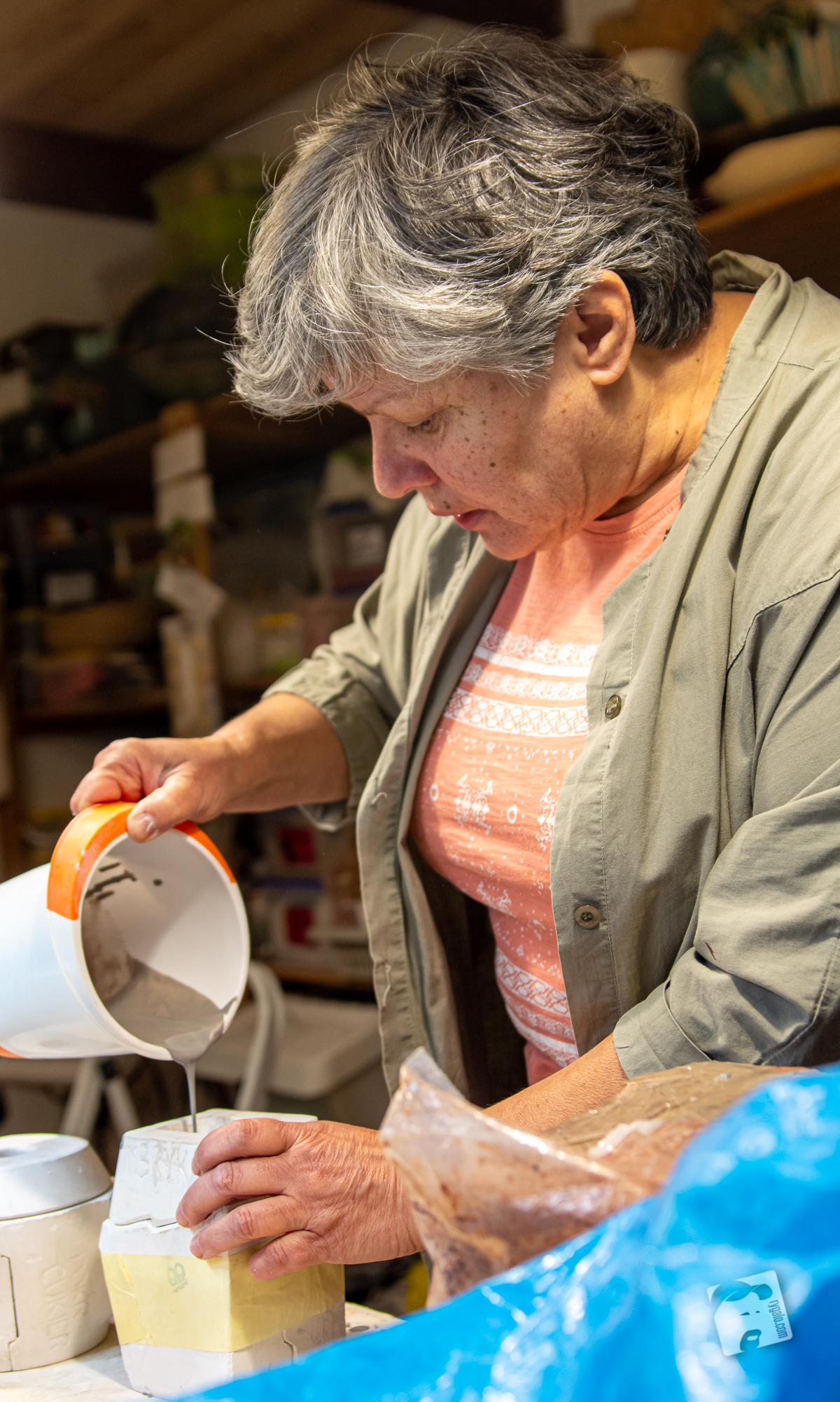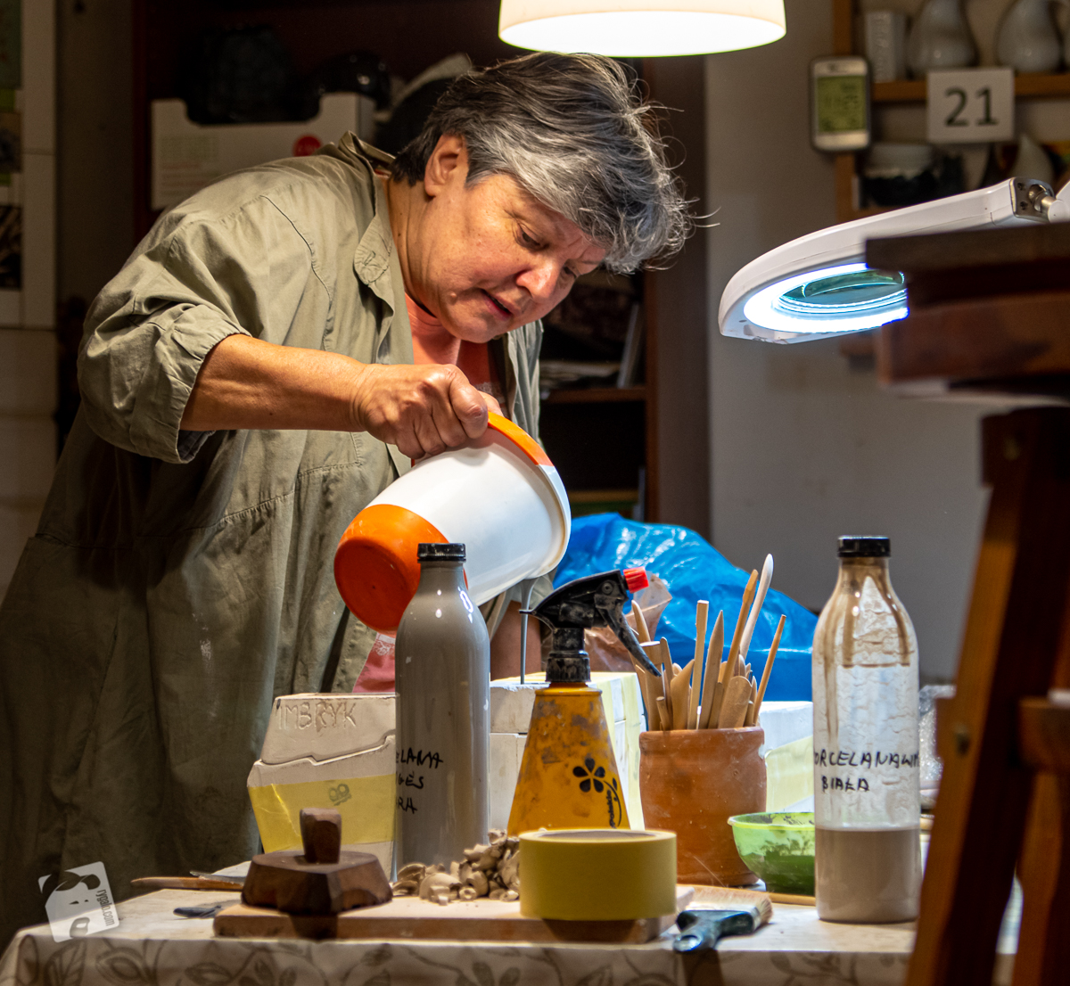 Za tydzień w Chrzęsnem mały ceramiczny evencik – wybraliśmy się dziś na korepetycje, żeby nie wyjść na „lajkoników”… Pracownia Wandy Wolf jest równie kameralna, jak ogród i nie bardzo chce się wracać do domu, ale to my mamy wakacje, a ona jest „w pracy”. Widzimy się za tydzień – będzie gorąco, jak to przy piecu!