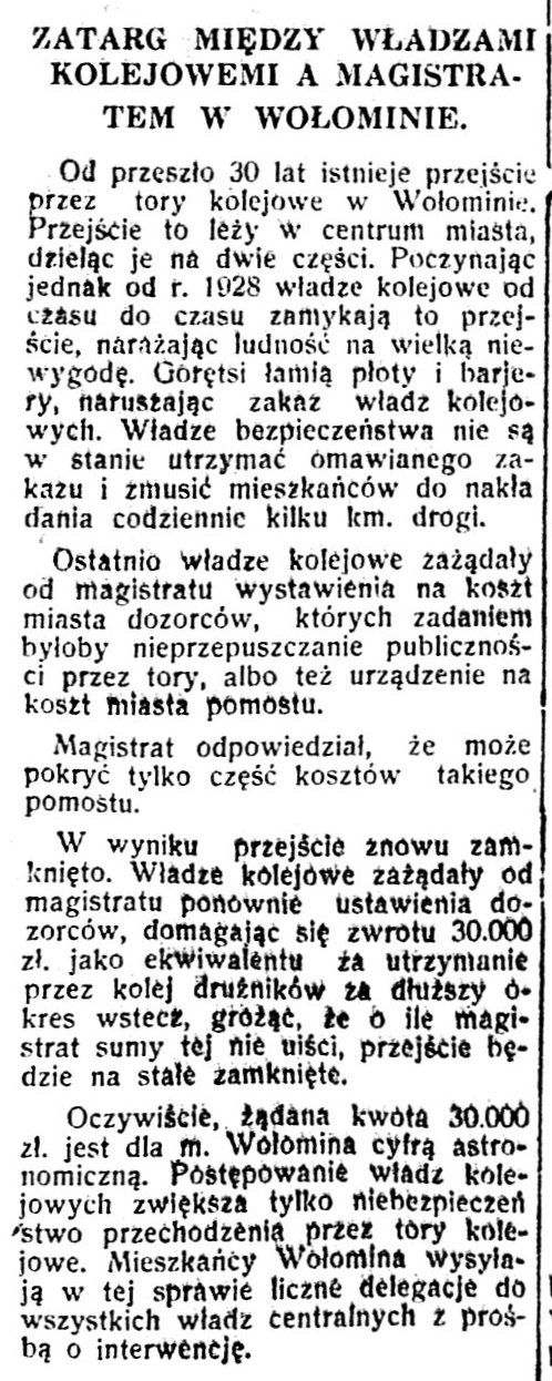 We wspomnieniach starszych wołominiaków czesto przewijała się łaźnia miejska… Miałęm wrażenie, że chodziło raczej o czasy powojenne, a tu niespodzianka: w 1930 roku miejscowa prasa wspomina, że „kąpiele” działają od ćwierćwiecza, a więc od 1905 roku! Nadal nie wiem, gdzie mieścił się ten przybytek, ale sprawa stała się mocno intrygująca.