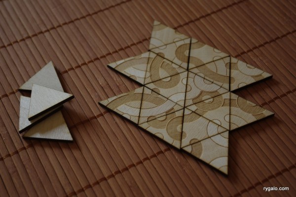 Długo dojrzewał ten pomysł, długo… W wolnych chwilach kreśliłem coś tam na skrawkach papieru, potem je gubiłem, obmyślałem nowe systemy, a potem je porzucałem stwierdzając, że zestaw 164 elementów jest nieco za duży. Chciałem opracować prosty system gry „kafelkowej”, ulokowanej gdzieś pomiędzy dominem, Tantrixem i Traxem, nie wymagający liczenia punktów w czasie rozgrywki ani stosowania dodatkowych akcesoriów oraz pozbawiony kłopotliwych zakazów. Powstał zestaw trójkątnych płytek – początkowo liczył ponad 80 kamieni, jednak po pierwszych testach okazało się, że 52 doskonale sprawdzają się w grze. Pozostało doszlifowanie reguł – systemu kar i nagród, określenie warunków zwycięstwa. Prezentowane poniżej zasady są przetestowane przez kilka osób (dzięki, Pomimo!), ale liczę na wsparcie ze strony internautów. Grę łatwo spreparować w domu – a może raczej w biurze, bo zalaminowany wydruk sprawdza się dużo lepiej :) Plik z kafelkami do samodzielnego rozcięcia jest do pobrania tu: triles