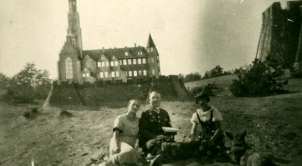 To zdjęcie było pewnie rodzinną zagadką przez wiele lat… Przekaz ustny głosił, że w tle rodzinnej scenki jest makieta kościoła Matki Boskiej Częstochowskiej. Na pierwszym planie komendant wołomińskiej policji, Henryk Skibiński, da się rozpoznać, ale… po co komu taka wielka makieta kościoła?