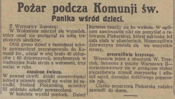 Ciekawe, jak na taką medialną sensacyjkę zareagowało wołomińskie społeczeństwo? Dziś mówi się, że Wołomin był zawsze ostoją prawicowych idei, ale przecież w latach trzydziestych było to miasteczko przemysłowe, pełne robotniczej biedoty… Antyklerykalnie nastawiony belfer okazał się być kilka lat później zaangażowany w tajne nauczanie na terenie Wołomina. Czytaj dalej „Zanim się z księży nie zrobi żywych pochodni”