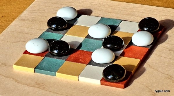Néstor Romeral Andrés ma na swoim koncie kilka udanych tytułów, ale Coffee z 2011 roku jest o tyle ciekawa, że w prosty sposób modyfikuje klasyczną regułę zwycięstwa: ileś tam pionów w linii. Ma też ciekawą cechę – można w nią grać zarówno na heksagonalnych, jak i tradycyjnych planszach w różnych rozmiarach, choć autor nie zaleca zbyt dużych… Czytaj dalej „Coffee”