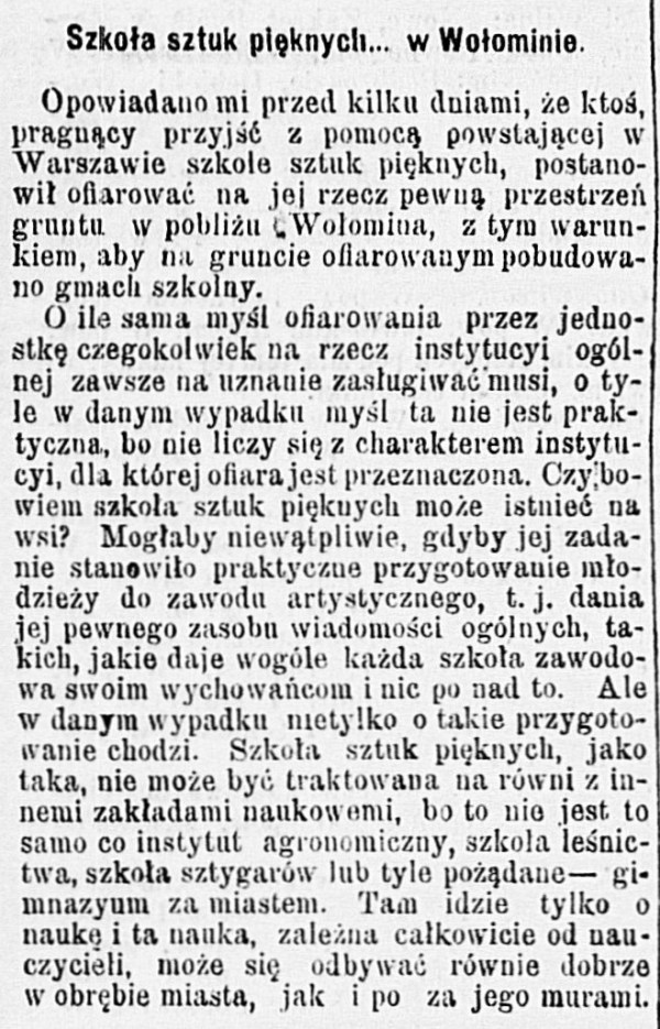 Nawet dziś powiedziałbym, że to dość… ryzykowny pomysł, a co dopiero w 1903 roku! Argumenty „przeciw” są niestety aktualne do dziś i na szczęście nie dotyczą tylko Wołomina. Czytaj dalej „Szkoła sztuk pięknych… w Wołominie”